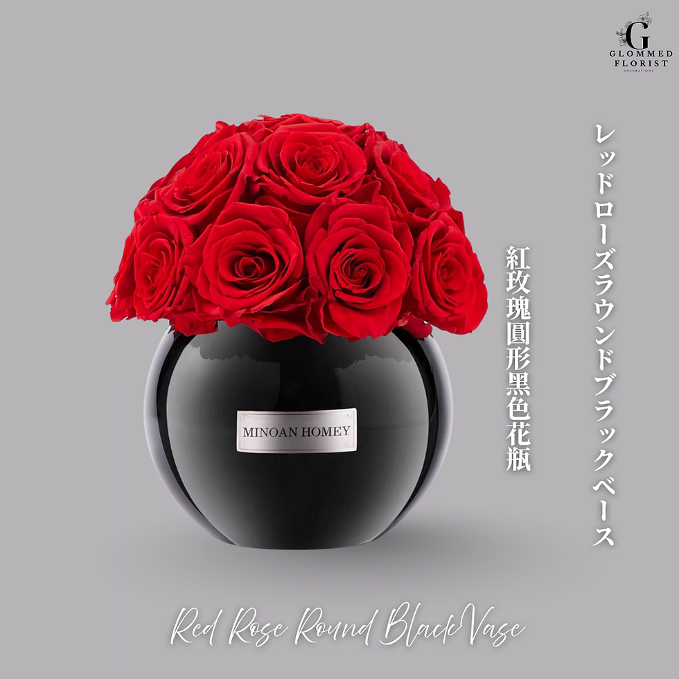 レッドローズラウンドブラックベース Red Rose Round Black Vase 紅玫瑰圓形黑色花瓶