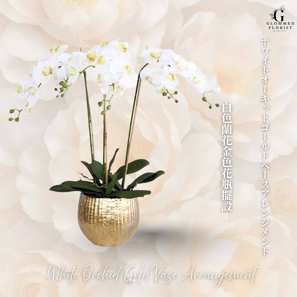 ホワイトオーキッドゴールドベースアレンジメント White Orchid Gold Vase Arrangement 白色蘭花金色花瓶擺設