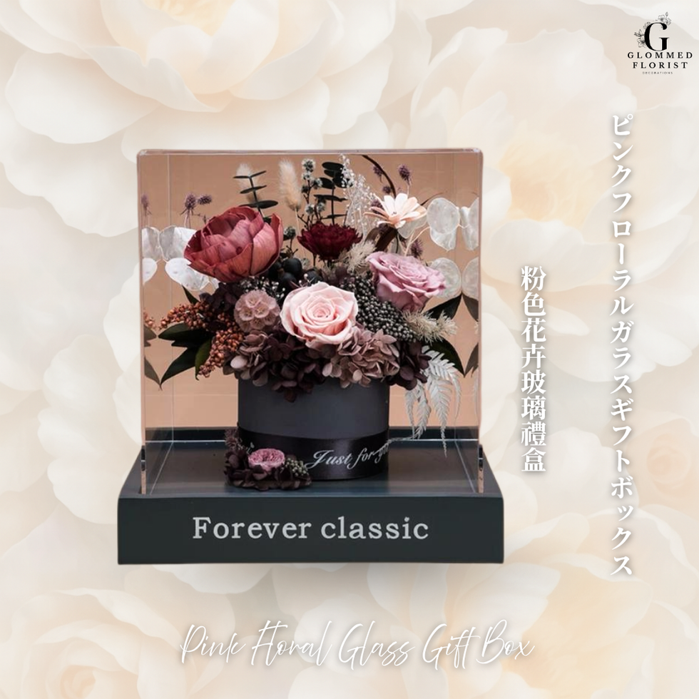 ピンクフローラルガラスギフトボックス Pink Floral Glass Gift Box 粉色花卉玻璃禮盒